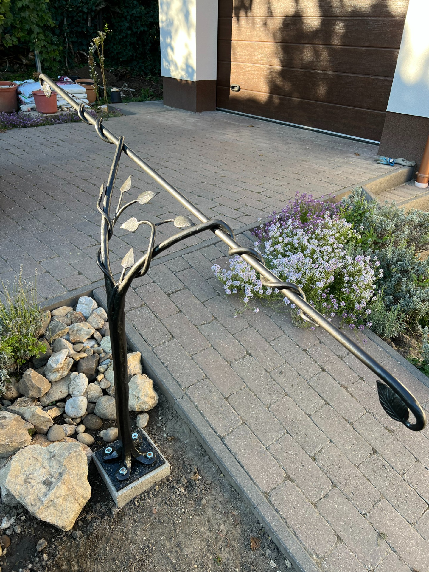 Növényi motívumon alapuló design, egy térkövezet emelkedő járda mellé készült.